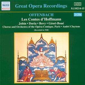 Seit diese Oper in die Hände der Musikologen gefallen ist, hat sie sich in ein überdimensionales und undramatisches Monstrum verwandelt. In den alten Aufnahmen herrscht noch die frühere, unbekümmerte Praxis vor, aus dem umfangreichen Notenmaterial zu Les Contes d'Hoffmann eine verknappte und spielbare Fassung zu verfertigen. Die Pariser Aufnahme aus dem Jahr 1948, ursprünglich auf 32 Schellackseiten gepreßt, zählt zu diesen „handfesten“ Wiedergaben. Das Ensemble enthält – abgesehen von dem prominenten Tenor Raoul Jobin in der Hauptrolle – keine klangvollen Namen, kann aber in seiner Gesamtleistung anerkannt werden. Die lebendigste Figur im Spiel bietet der exzellente Komiker Bourvil in den Dienerrollen, wobei es gar nicht störend wirkt, daß er keine eigentliche Gesangsstimme besitzt.